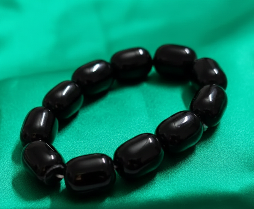 Bracelet traditionnel somalien en perles noires lisses. Un accessoire simple, élégant et facile à porter.